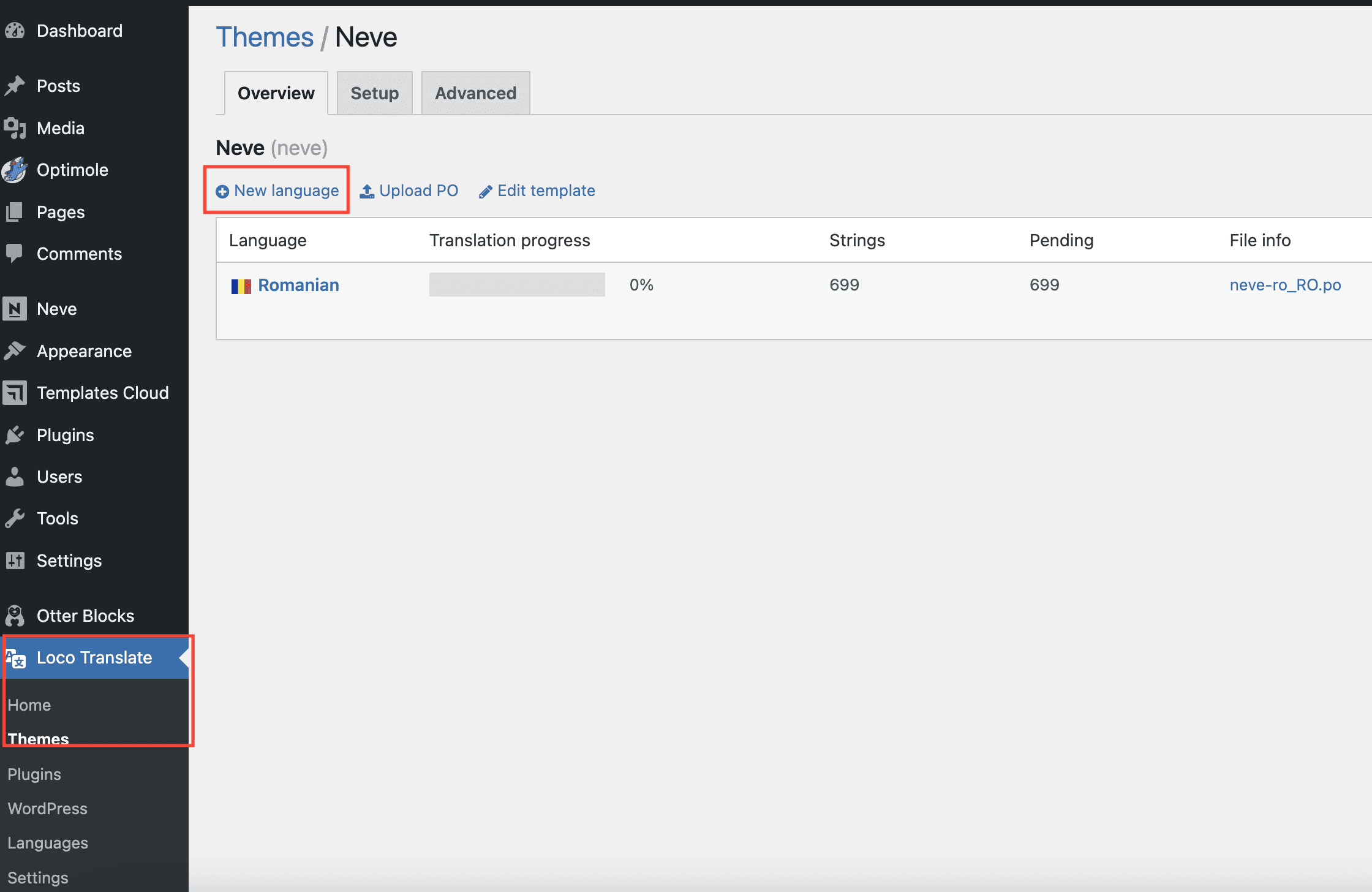 Add new language for theme in Loco Translate