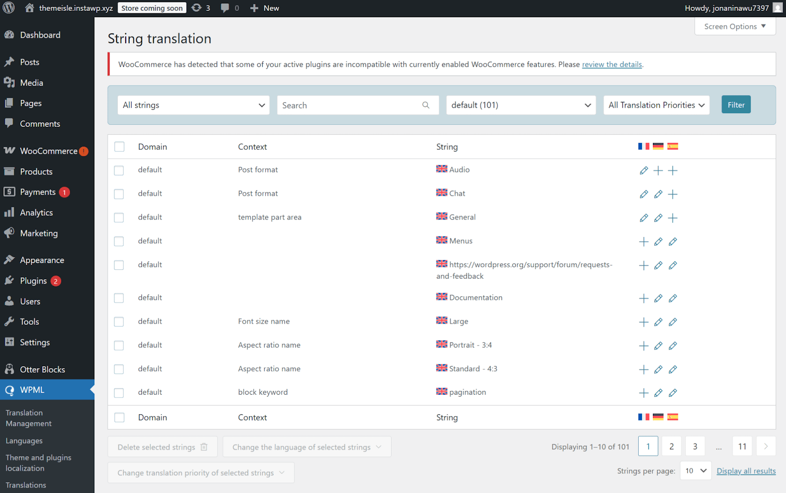 WPML String Translation Interface