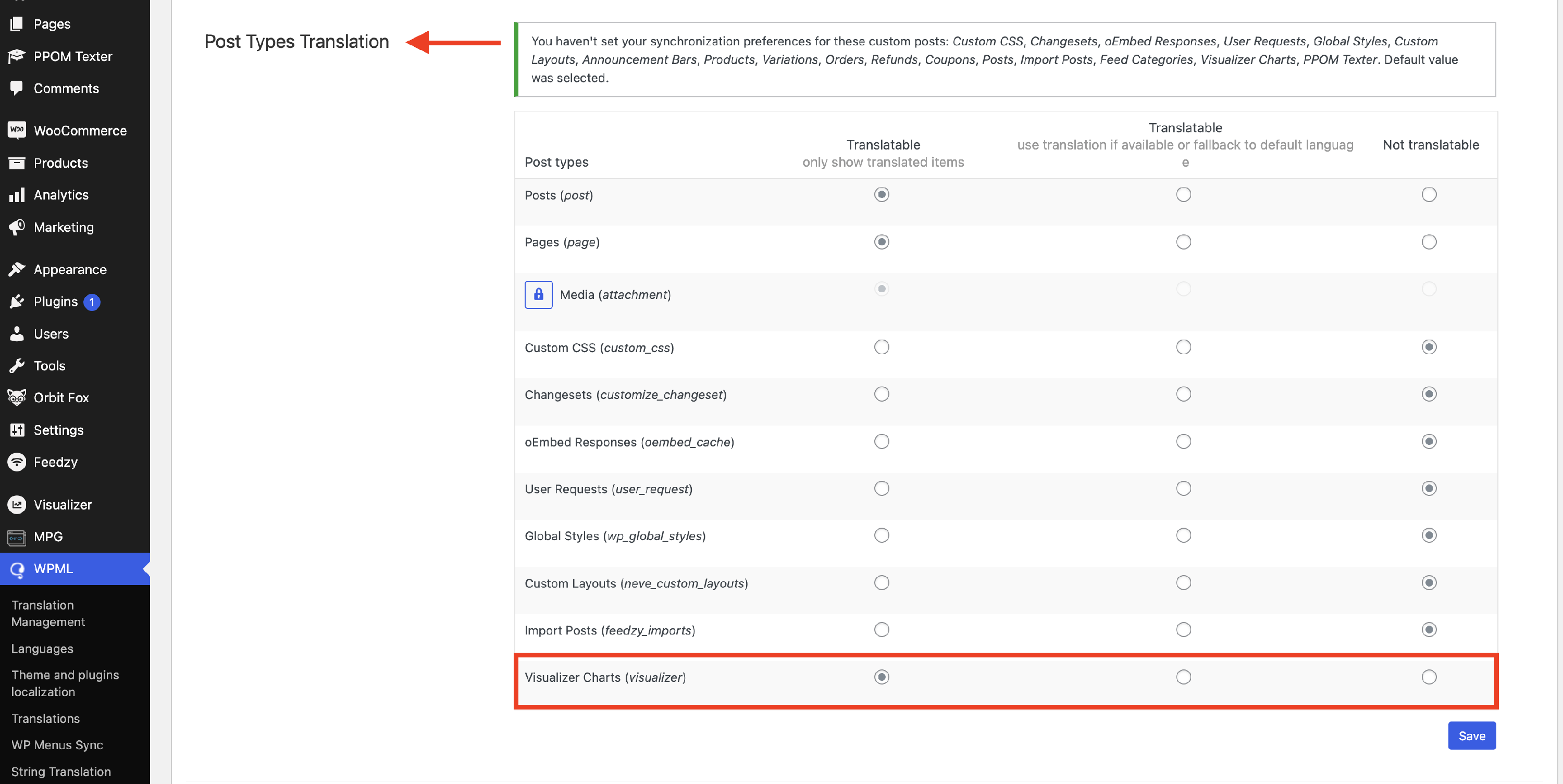 Enable Visualizer Charts as Post Type Translation in WPML