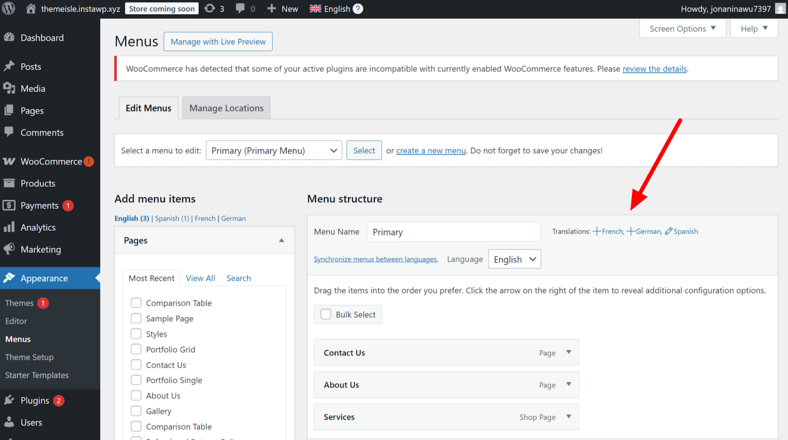 To translate menus with WPML, follow these steps: