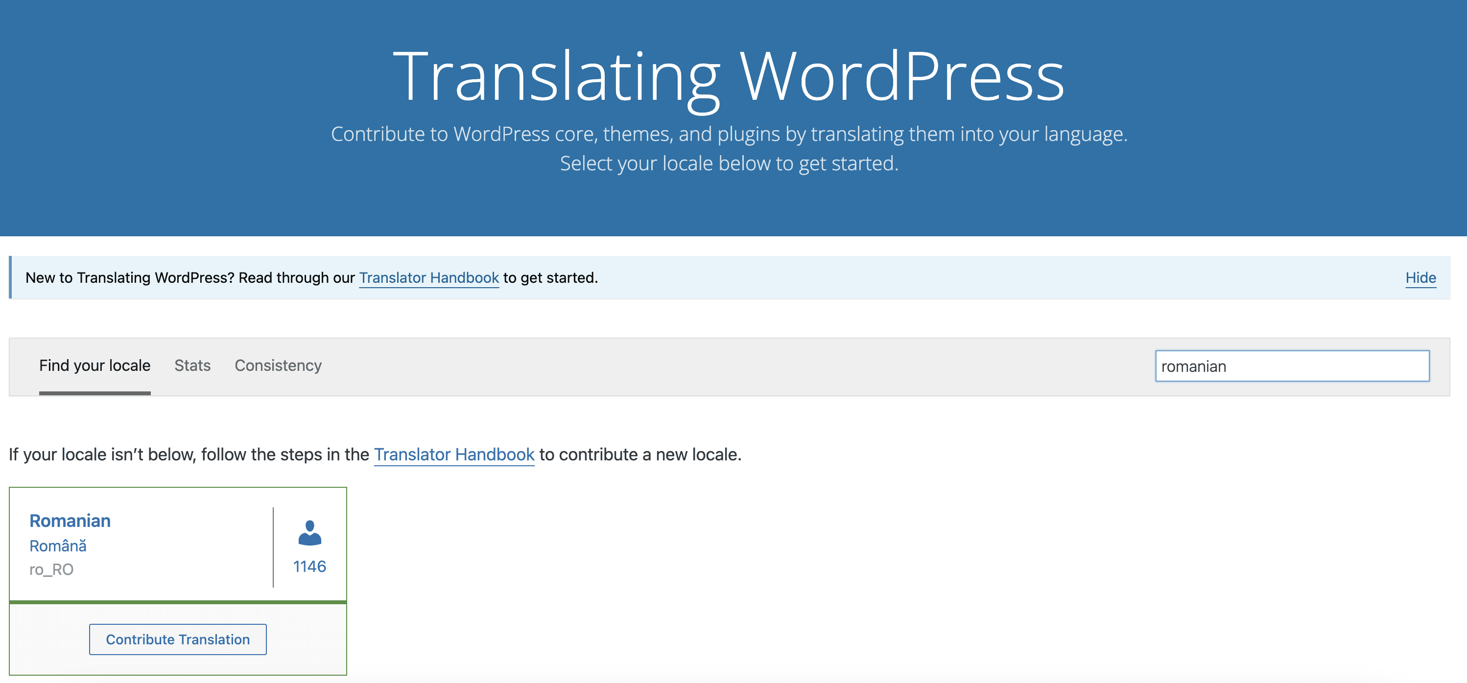 Step 2. Search for your locale and click on Contribute Translation for that locale.