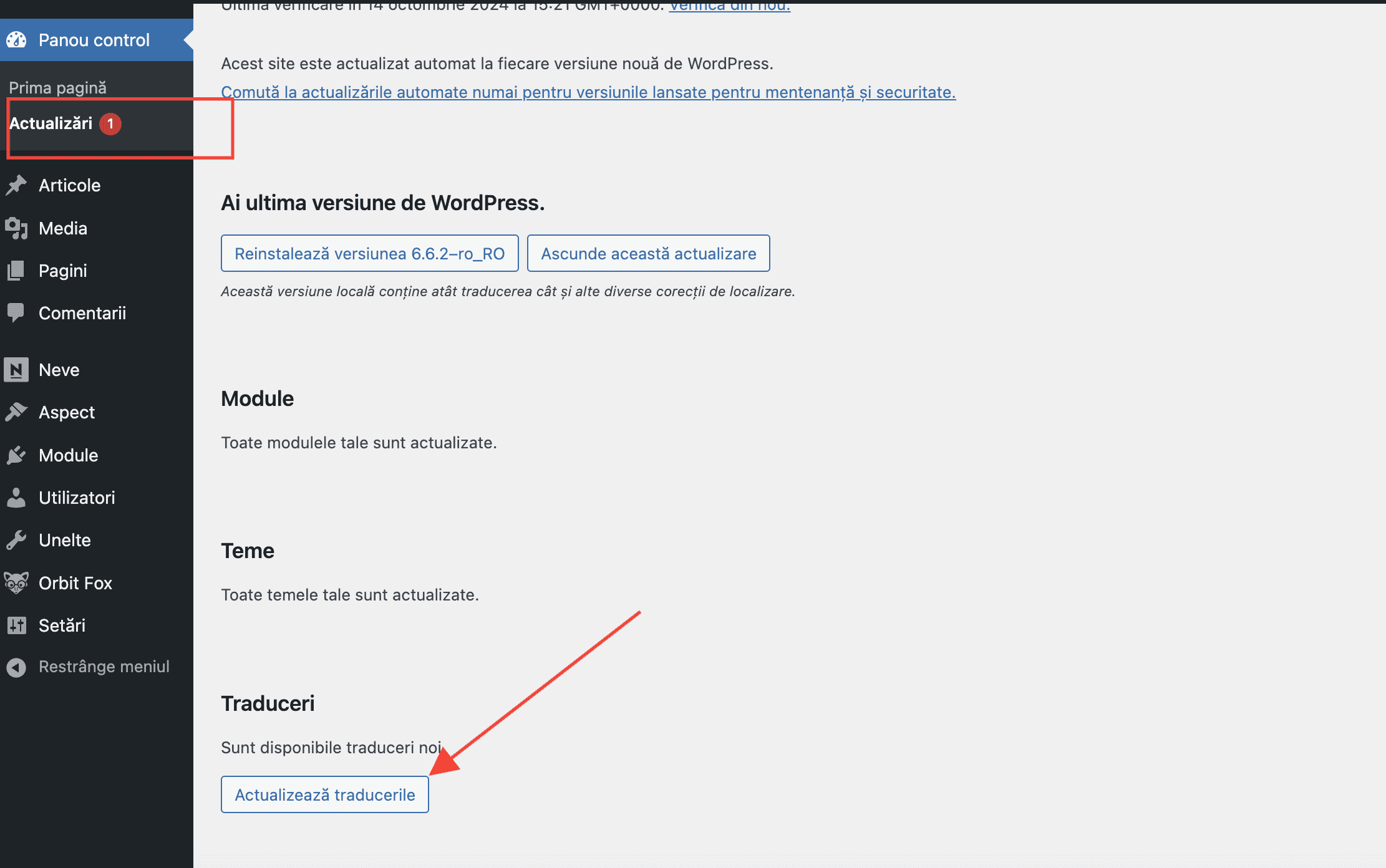 Get the latest translations available in your WordPress dashboard