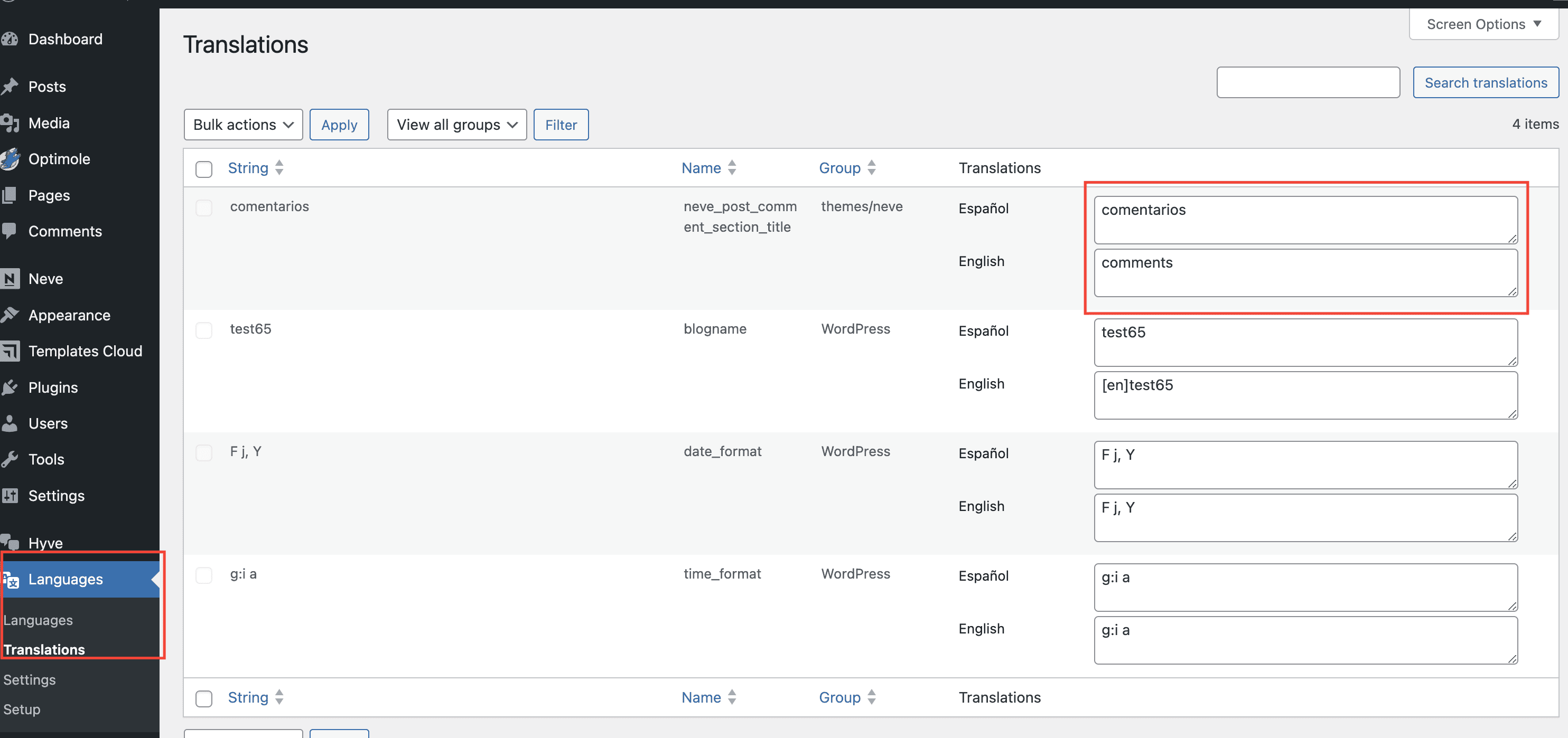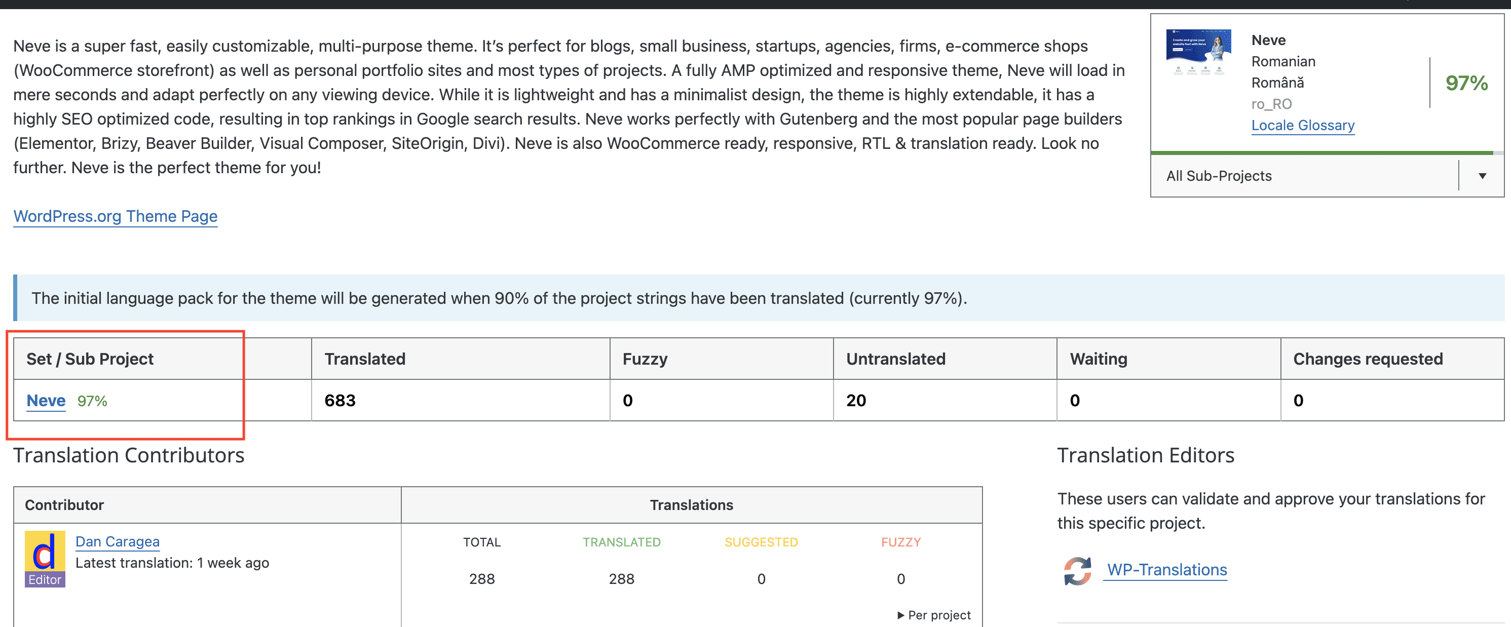 Seaching for the Neve theme to translate