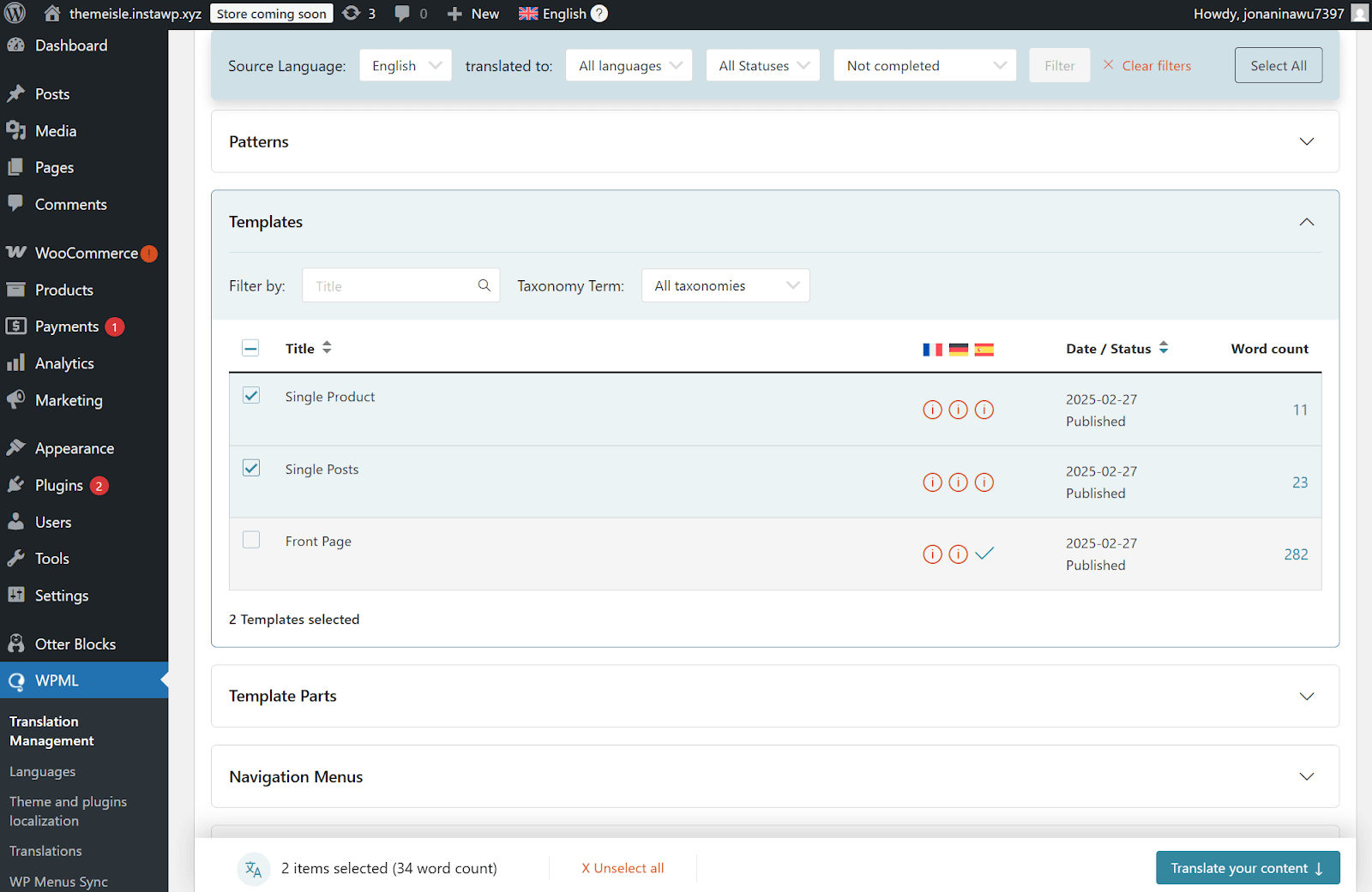 Use case: Translate FSE themes with WPML ​