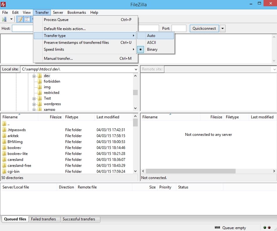 šNote: If you're usingĀ Filezilla, please make sure to check transfer type ( binary ).