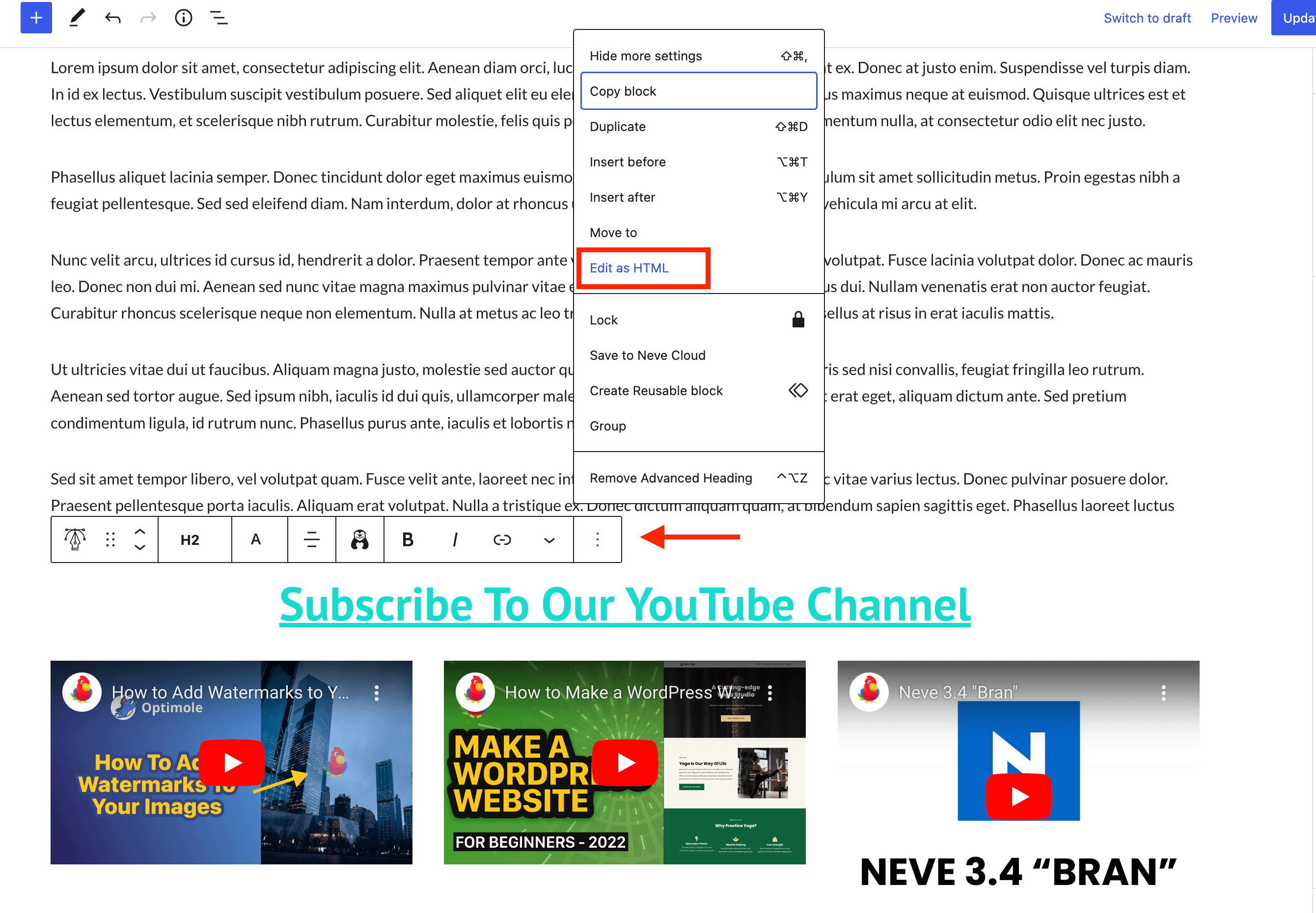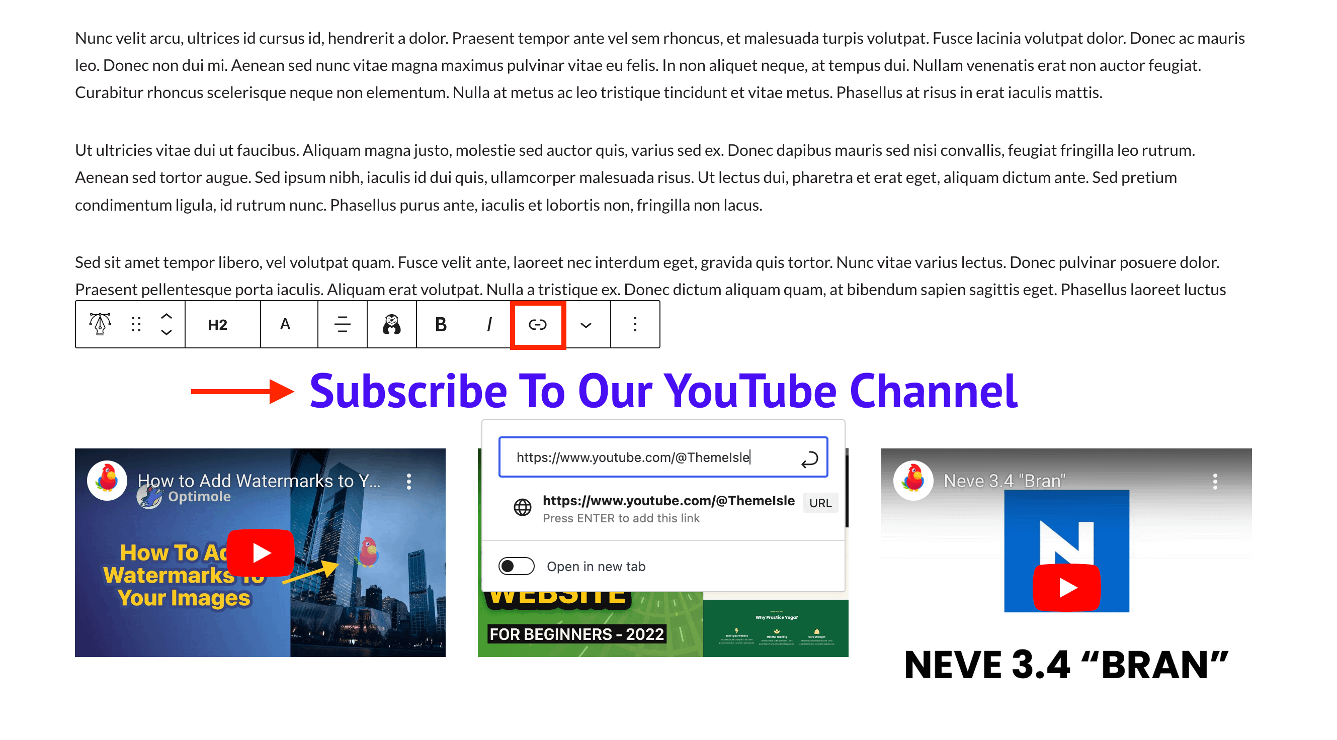 1 Hover over the words that you want to link to something, then use the link icon to insert a link.