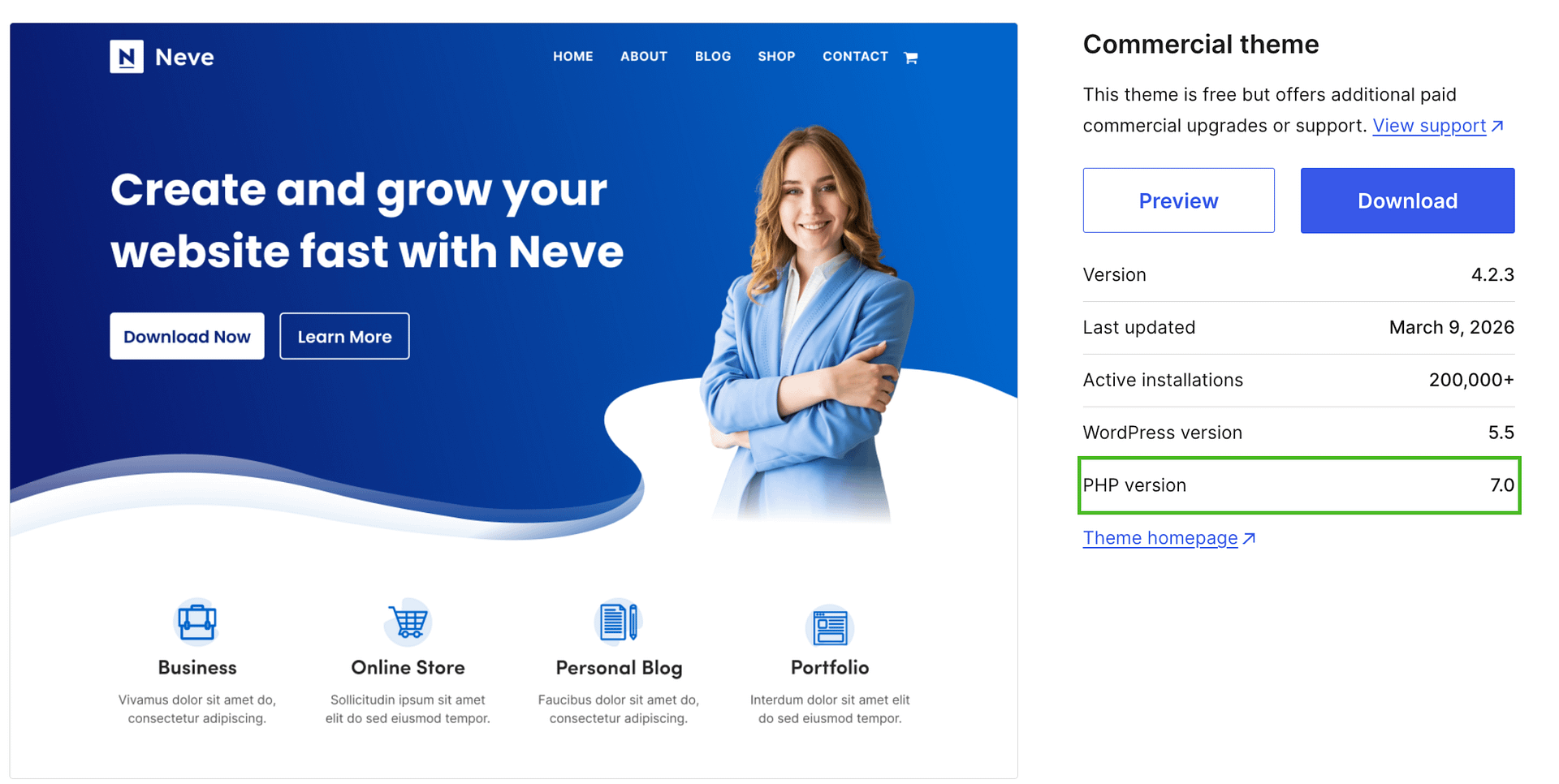 - Go to the product's page on WordPress.org โ for example, the Neve theme page.