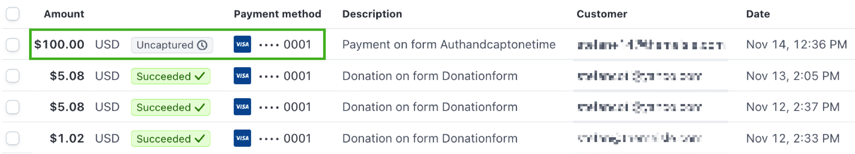 Instead, the payment appears in Stripe as Uncaptured, and you can manually capture it at a later time with a single click.