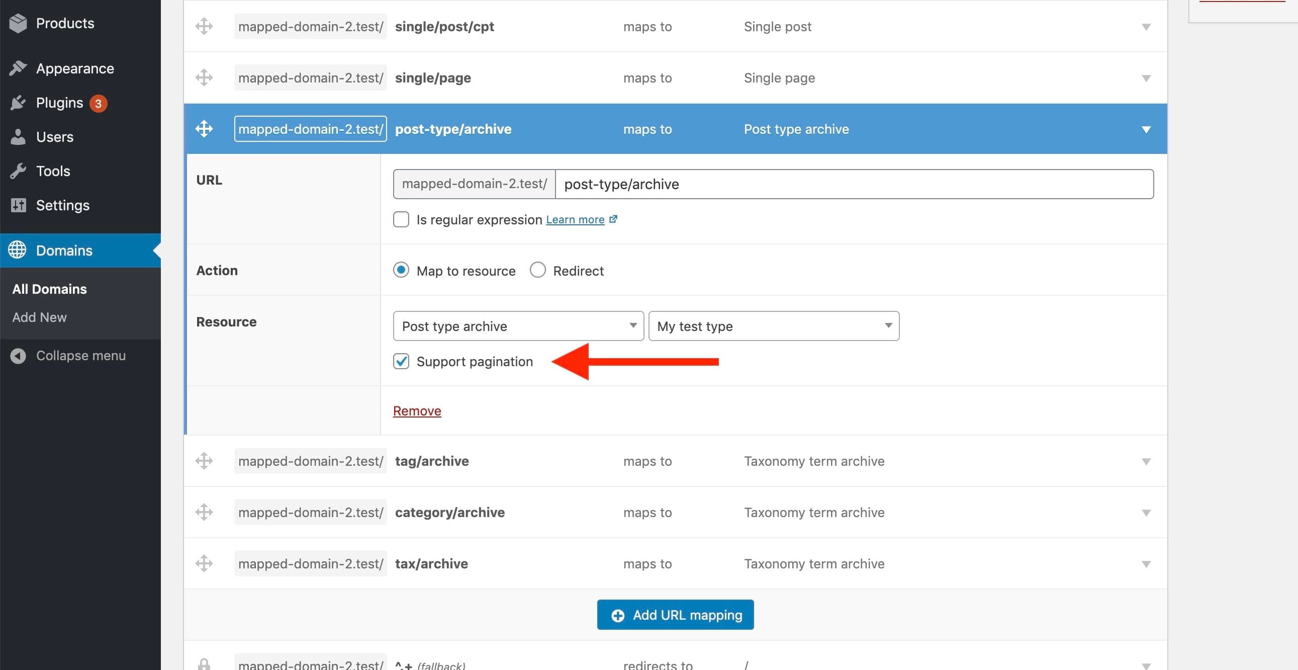 Enabling this option will make paged URLs — e.g; http://domain.com/your/url/page/3 — accessible on the mapped domain and will offset the posts to suit the requested page number.